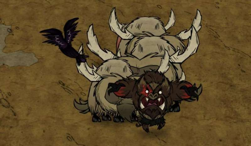 玩家需要利用噩梦燃料根据配方制作出多用斧镐,继续去挖掘绝望石,就会让其进入松动的状态中,时间为六秒。在限定时间内,玩家需要接着去挖掘其他两根石柱。成功后,即可释放掉被噩梦锁链绑住的猪人。刚刚被释放的boss是不能够被攻击的,因为此时正有三只寄生暗影正在攻击它。而我们也没有办法去攻击寄生暗影,只有当角色的理智值低于百分之十五以后,才能对其发起攻击。将三只暗影都击杀到以后,玩家就会正式进入与噩梦猪人的战斗里。