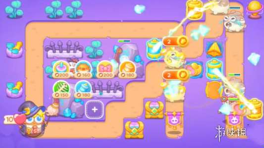 1、本关主要使用正极电池、负极电池和蝴蝶结这些炮台。