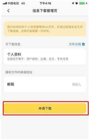5、输入要接收文件的邮箱地址,确认【申请下载】即可完成