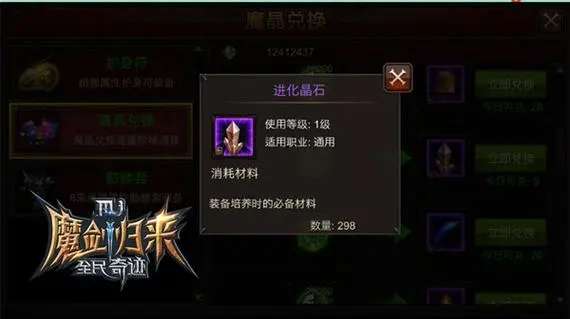 在《全民奇迹》中,魔晶作为一种极其重要的资源,对于提升玩家角色的能力、购买游戏内重要物资、甚至影响玩家在游戏内的发展进程都有着不可或缺的作用。如何在全民奇迹中获得魔晶呢?在深入解析如何获得魔晶之前,我们首先来了解一下魔晶究竟是什么。在《全民奇迹》的魔幻世界里,魔晶是一种拥有神秘力量的宝石,它不仅可以用来增强角色的属性,还可以在游戏内的商店中兑换各种道具和装备,是游戏进程中必不可少的资源。