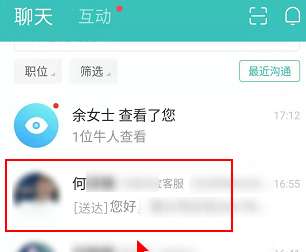 打开boss直聘,在消息页面,点击一个招聘信息。