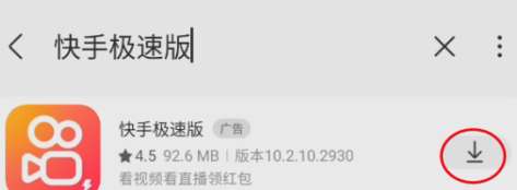 进入搜索栏输入快手极速版点击右侧的下载符号进行自动下载安装