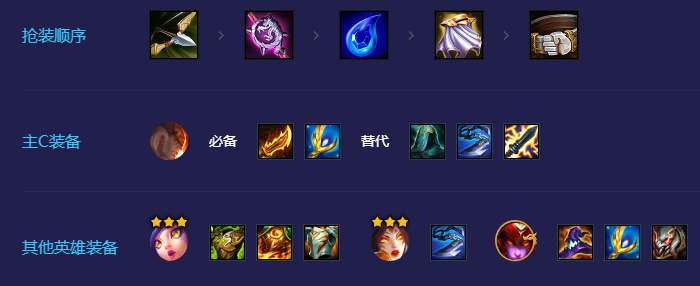 主c斯维因装备优先级最高,然后给前排妮蔻找肉装,有多余的法装可以直接给到希瓦娜,有多余的物理装可以直接给到霞。