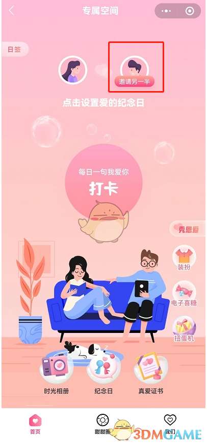 3、如下图所示就是dr情侣专属空间啦,大家进入后点击邀请另一半,加入成功后就可以创建一个属于你们两人的线上天地了。