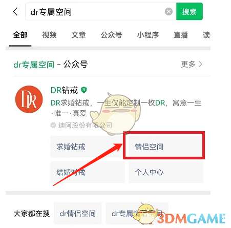 1、点击微信页面右上角搜索框进入后输入【dr】或者【dr专属空间】等关键词进入。