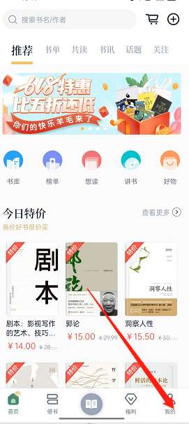 1、打开藏书馆,选择【我的】。