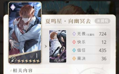 2、夏鸣星·向幽冥去,主属性无畏,副属性信任,技能群攻。二段光影材料等8号卡池开了才能解析。