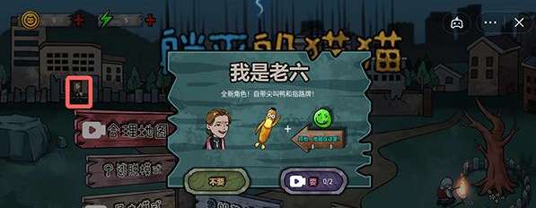 地图左上角下方找到来回走动老六,弹出一个窗口选择要,观看两次广告之后会获得自带尖叫鸭和指路牌我是老六皮肤。