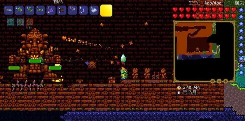 凭借着神庙钥匙,我们可以顺利的进入丛林神庙,此时将准备好的电池放进神庙正中心的箱子当中,就可以召唤神庙的隐藏boss石巨人,当这最后一个boss也被玩家击败,火星暴乱事件就可以开启了。由于飞碟只会在空中生成,所以要提前准备好飞行道具,用飞行道具一路向上,就可以来到四周全黑的太空,此时只用耐心等待即可。而当宇宙出现特殊事件的时候,飞碟的生成速度也会加快,如果长时间未刷新,则需要检查之前的步骤是否完成,会不会有boss并没有击杀。在太空等待一段时间后,如果有飞碟出现,它会在检测到玩家之后,在飞碟的底部发出红光,随后逃走。