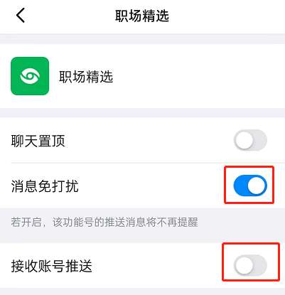 3、将消息免打扰打开,接受账号推送关闭即可。