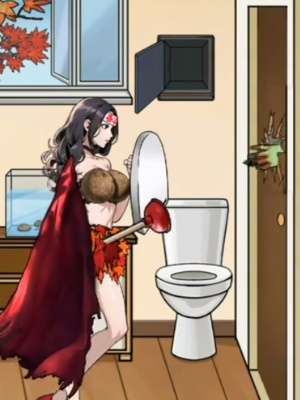 2、接着把马桶刷、马桶盖移到小美手上,将鱼缸中的海带移到小美头发上;