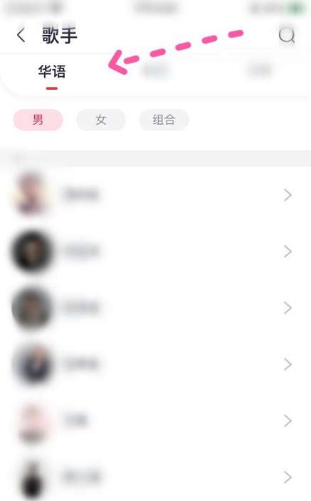第三步:最后在歌手界面 ,点击进入华语,即可查找华语歌手。