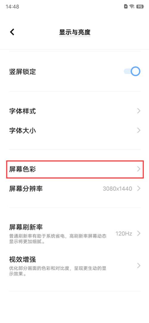 2、点击屏幕色彩。
