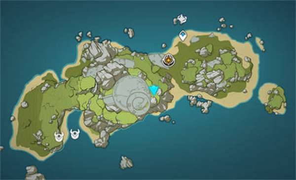 1:首先我们需要到达此位置,然后就会看到一个山洞,进入山洞之后,找到如图位置进行互动,有四个元素方碑,按照顺序进行触发,距离不是很远,比较容易找到;