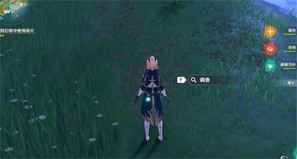 2:我们探索岛屿的时候会看到一些奇怪的图案,靠近的时候就会出现调查的交互按钮;