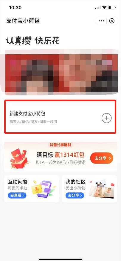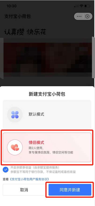 5、还可以从小荷包中点击新建支付宝小荷包,直接新建情侣模式即可。
