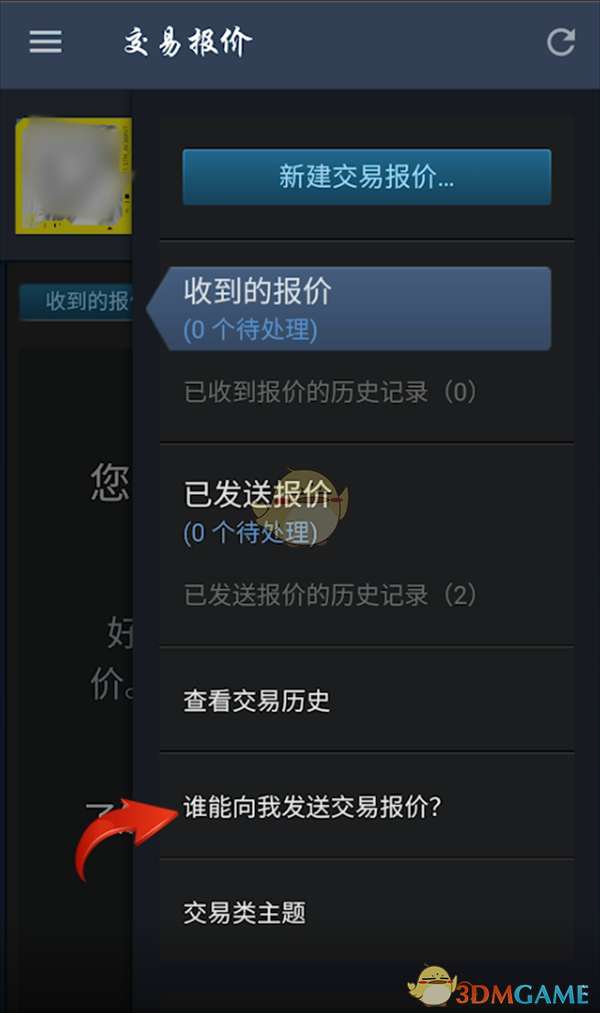 3、在下拉界面中点击【谁能向我发送交易报价】便可进入子界面查看报价相关的设置。