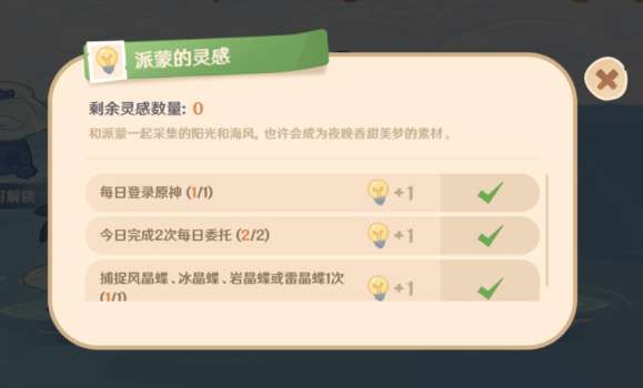 活动主要有两种道具,分别是派蒙的灵感和给派蒙的小零食,获得方式便是活动给的小任务,这个我相信大家都可以完成