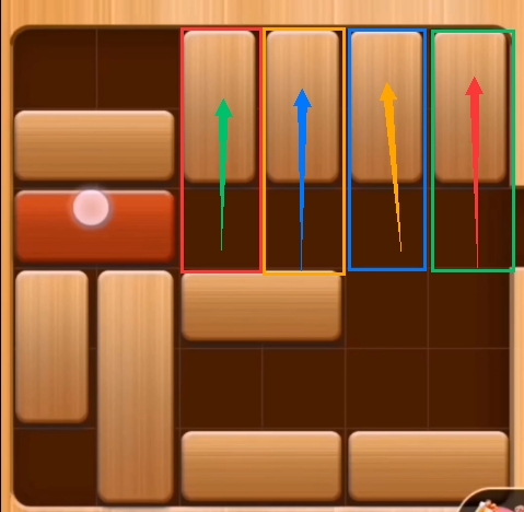 第一步:将第三、四、五、六列的竖的积木均往上推(如图:)