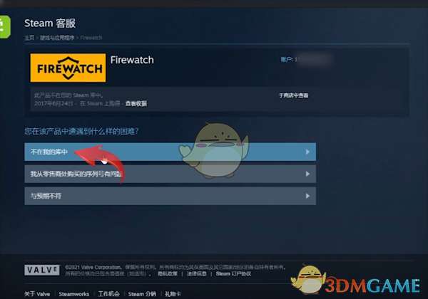 2、在游戏详细页面中选择游戏不在我的库中,最后选择将移除的游戏恢复到我的库中即可,被恢复的游戏会立刻添加到steam库存内,自己可以搜索找到游戏。