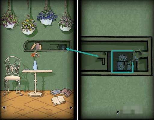 19、点击盆栽架,放上两个【多肉盆栽】根据羊皮卷上的线索和笔记本符文代表的意义,结合盆栽上的符号,调整盆栽的位置,开启法阵。