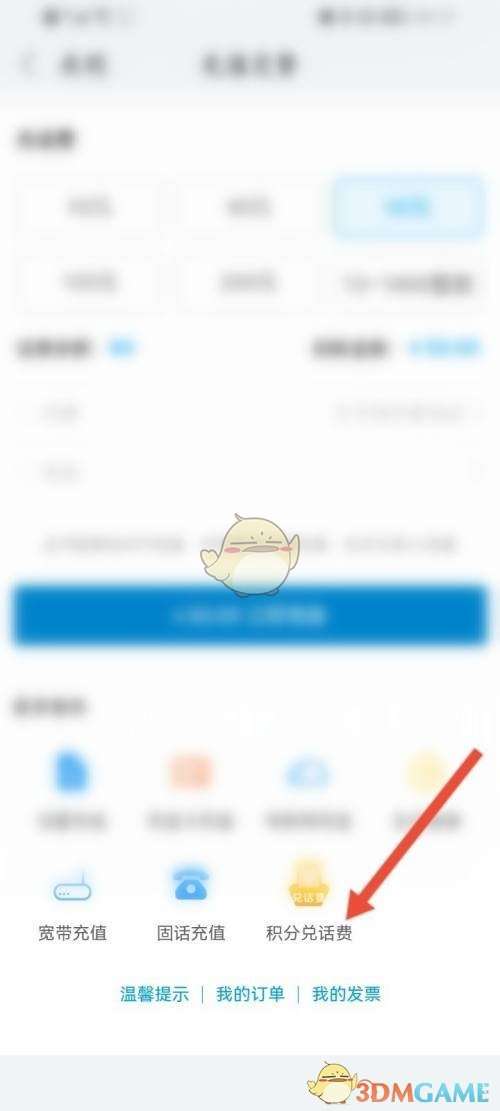 3、接着点击下面的积分兑话费选项。