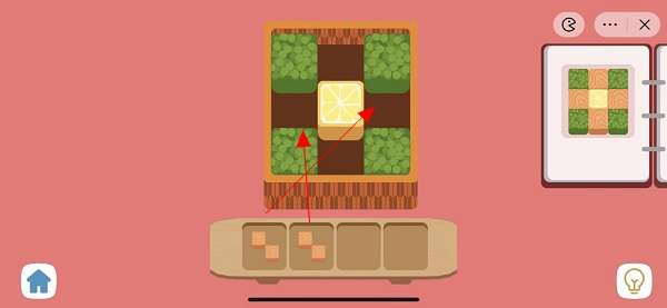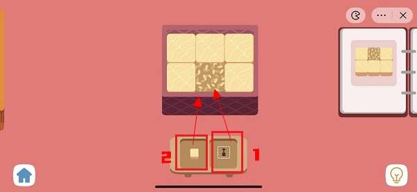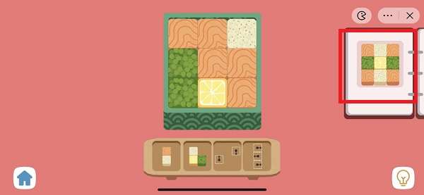 6、后面也是一样的道理,根据右边给出的图案放置寿司,符号可以改变寿司位置,需要先用符号,改变正确后,最后再把剩下的寿司放到对应位置就可以了。