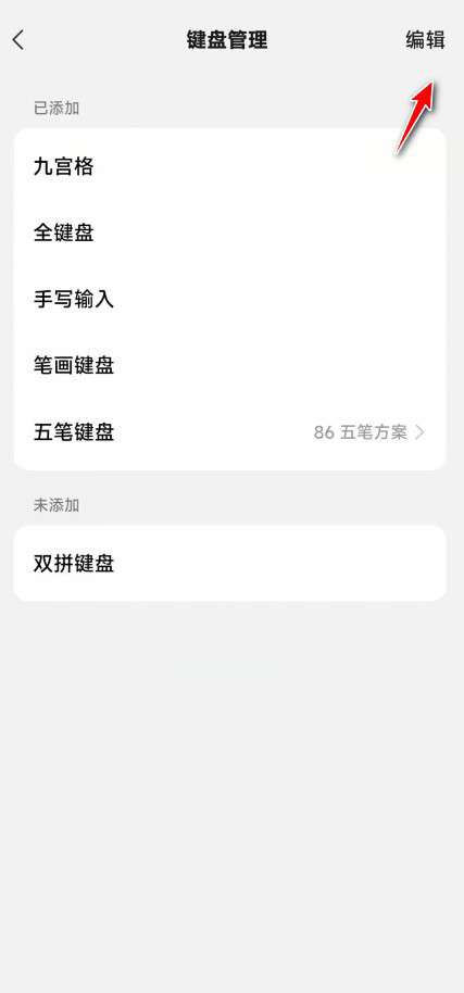 2,然后,进入键盘管理后,点击右上角的编辑按钮。