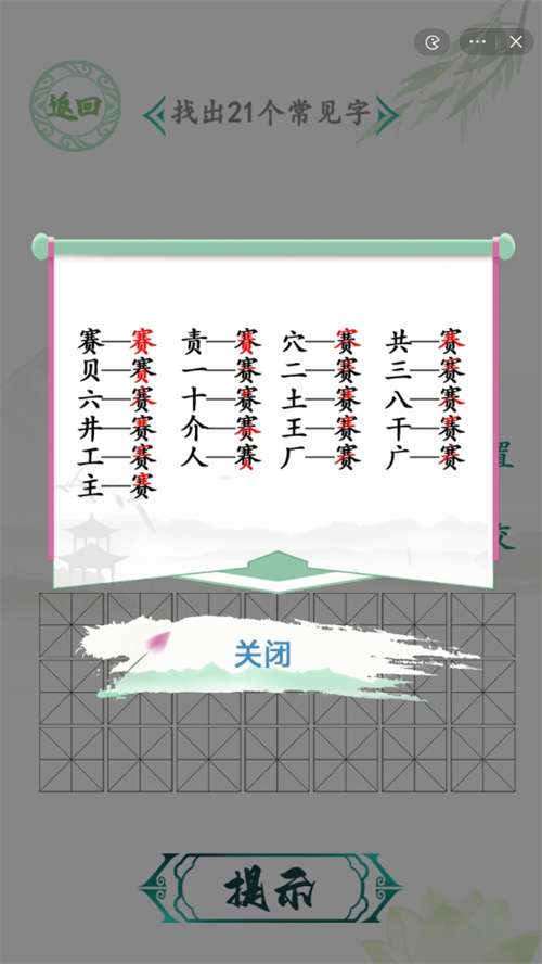 汉字找茬王找字赛攻略 有关赛找出21个常见字的答案详情