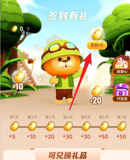 在【签到有礼】界面,点击【签到+5】按钮即可。