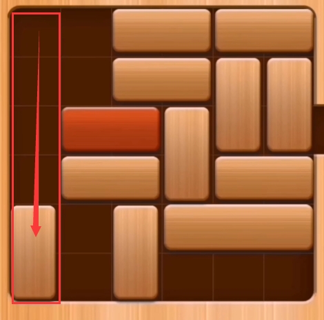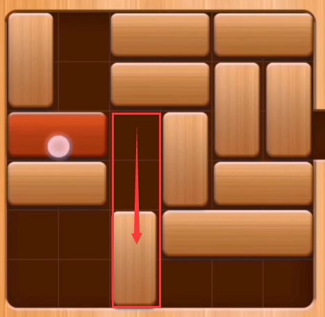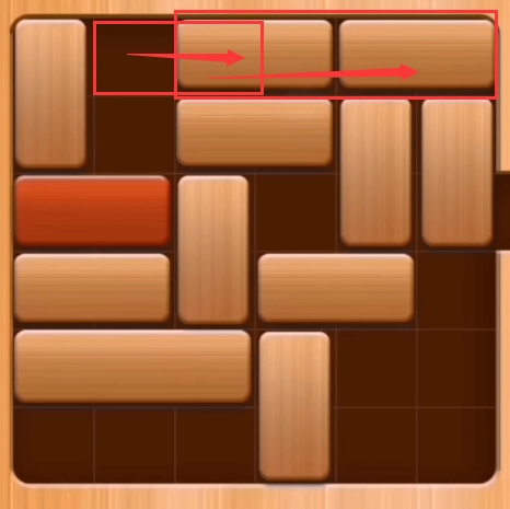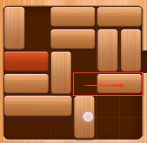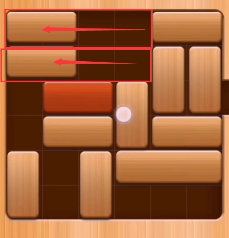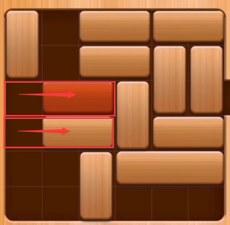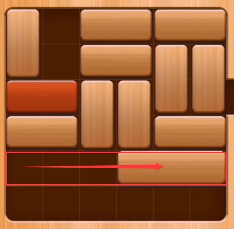 第十一步:先将粉色区域的两个砖块向左移动,然后再将红色区域的两个木块向下移动。(红木即可通关)