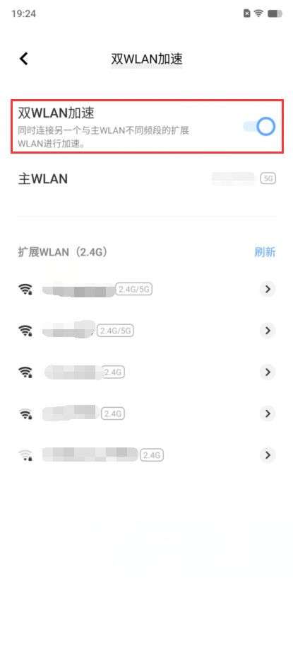 4、开启【双WLAN加速】开关,并选择扩展WLAN使用即可。