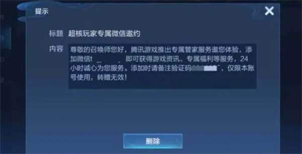 4、满足成为超核玩家的条件后,用户在游戏中会受到一条官方邮件邀请你添加客服的微信。