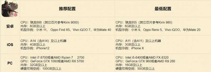配置要求详见下图: