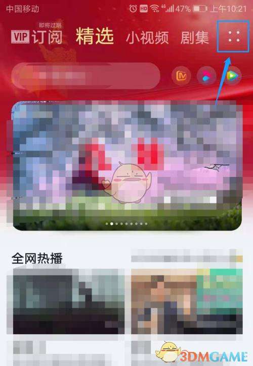 1、打开华为视频,点击页面右上方的四点图标。