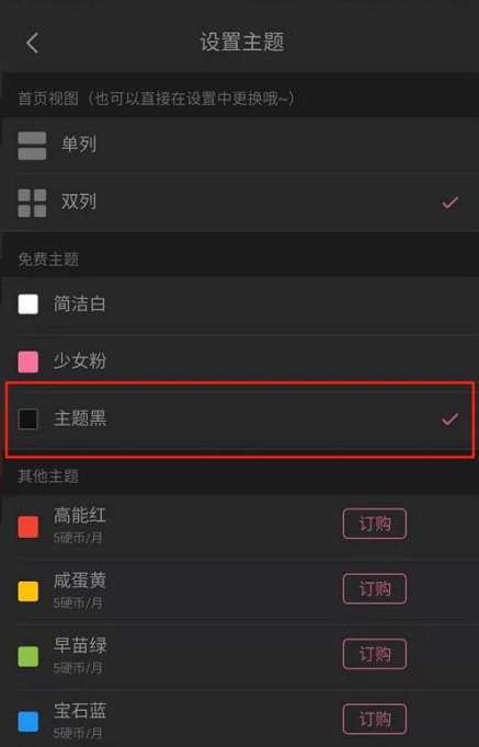 第四步:进入设置主题页面,根据个人需要点击选择合适的主题。
