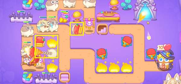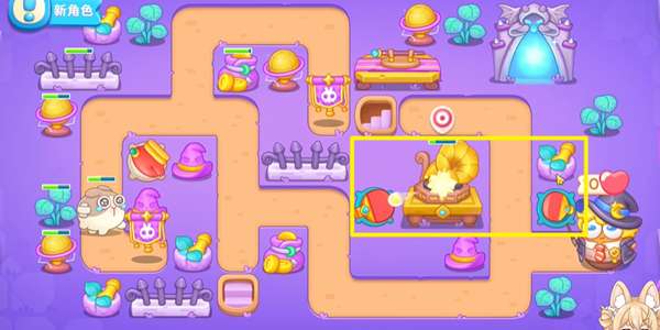 1、阿波与魔法宝藏第26关开局比较简单,只需要一个拳击炮塔就可以打掉一部分兔子了,右边我们放置一个乒乓球去拆建筑。
