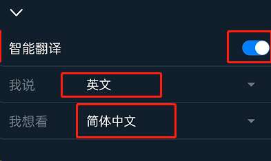 4、将智能翻译右侧功能开启,选择好翻译语言就可以了。