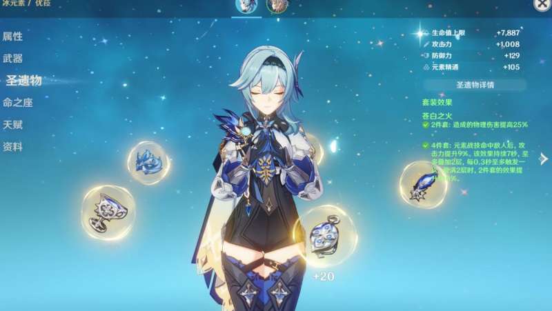 不过由于双雷角色的释放技能频率较高,会让双冰角色的效果受到影响。因此我们可以为菲谢尔带上干岩圣遗物,为迪奥娜选择祭礼弓。第二套则是双冰阵容,可上阵优菈、罗莎莉亚和钟离,最后一位可选择行秋或者班尼特。其中罗莎莉亚不需要打多少的伤害,她主要为优菈提供物理增伤效果,携带的武器西风枪也会为其补充能量。而钟离需要创造护盾,来弥补阵容无法打出超导效果减抗不足的问题。