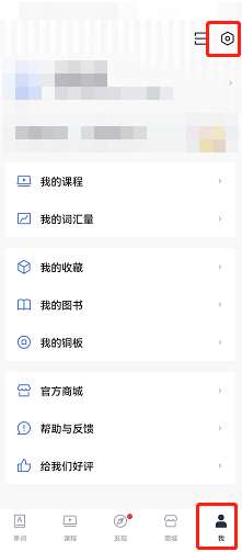 1、打开百词斩,切换到【我】页签,点击右上角设置图标进入;