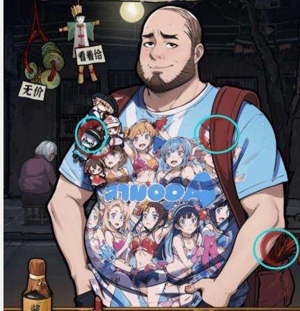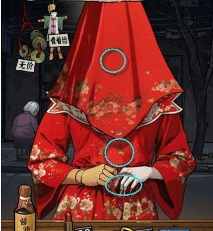 4、顾客四,点击下图所示点,给她绣花鞋,然后上下滑动木头手,媳妇,吓死我了