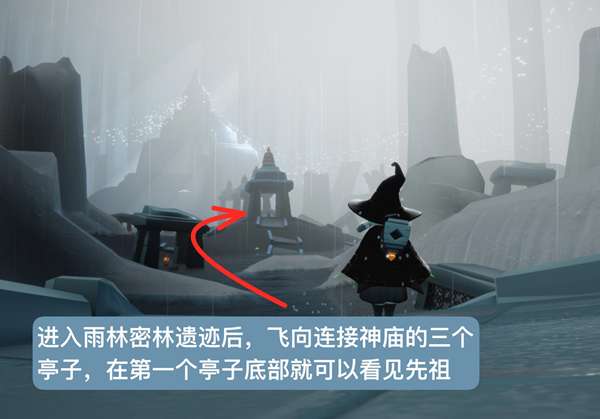2、我们运火路线很短,推荐大家先去停雨,最后我们再点燃先祖即可获得飞吻动作。