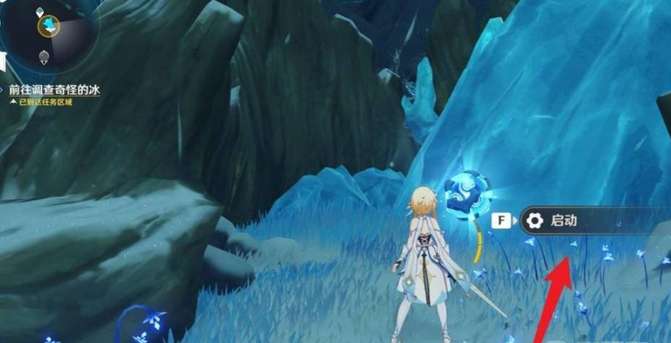 1、来到覆雪之路,调查奇怪的冰。(需要使用周围的4个深赤之石打破坚冰,解锁忍冬之树)