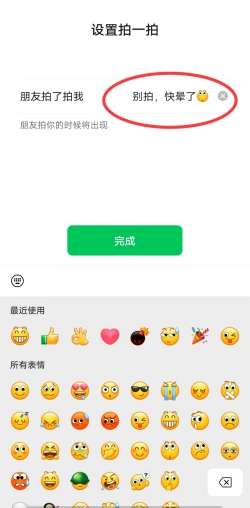 4、最后在拍一拍的页面点击设置好内容之后点击【完成】;