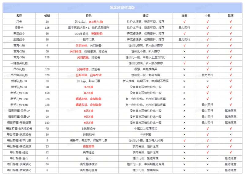 对于微氪小氪玩家该怎样氪最划算呢?继续上干货,分析下目前版本各个礼包的价值,以下排名分先后: