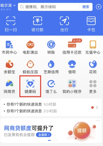 当用户打开支付宝“健康码”界面,即可展示两个“码”,融合行程信息、核酸检测结果、新冠疫苗接种记录等多项服务信息,继而实现一页通行。当实现一页可查“二码合一”后,大大减轻出行人员填报行程信息负担。在人流高峰时段,减轻人员拥堵、聚集等问题。具体使用方法如下:
