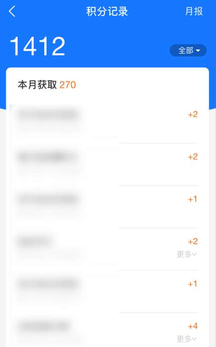 第五步:在新的界面就能查看每一条的积分记录了。