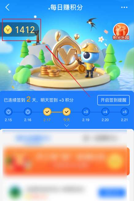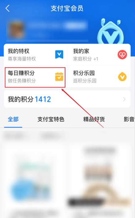 第三步:在支付宝会员界面带点击“每日赚积分”。