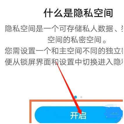 3、点击开启,并设置隐私空间密码即可。