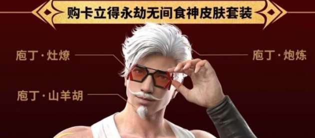 1、11月7日至12月4日期间,玩家通过肯德基宅急送购买肯德基大神卡(90天)可以获得永劫无间限定版卡面,同时在卡包中可以查看“永劫无间食神皮肤套装”兑换码。